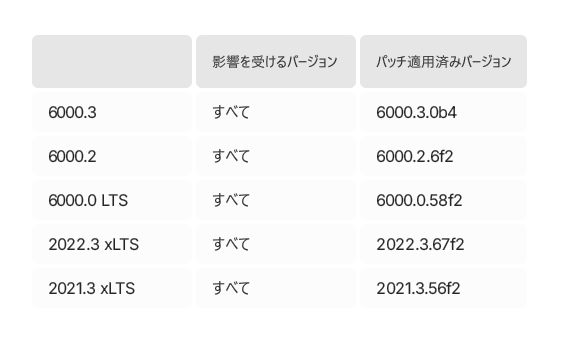 これに対して、該当プラットフォームへゲームを公開している方は、パッチ適用済みUnityエディターへのアップデートと再ビルドが求められています。