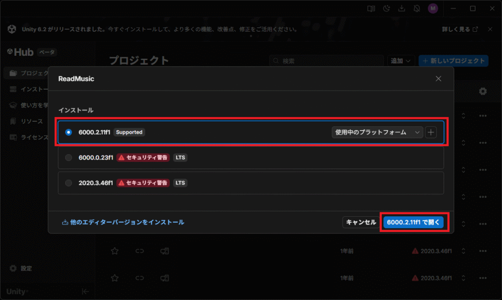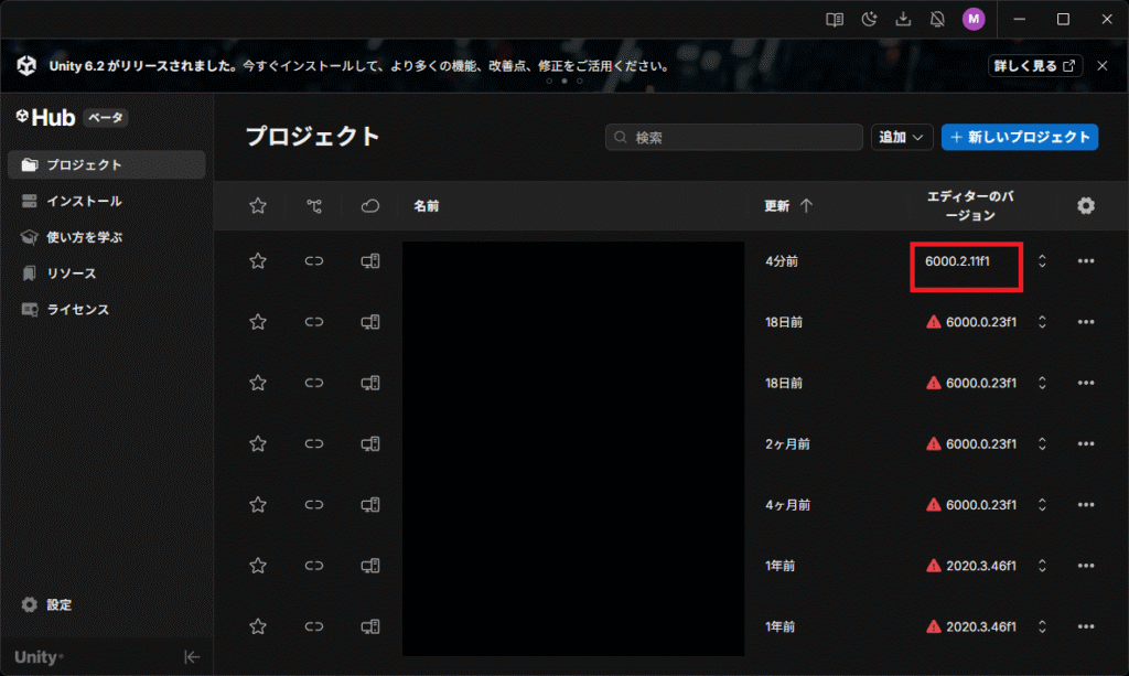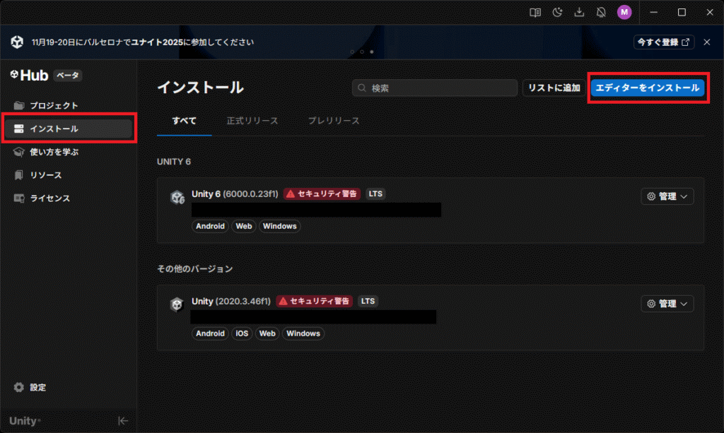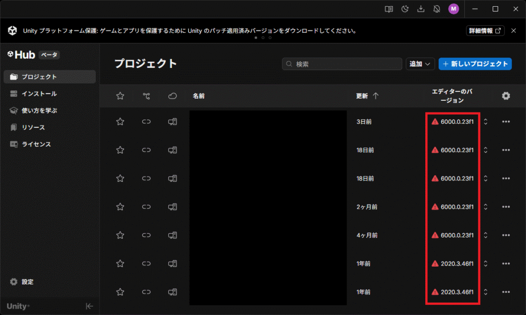 私はWebGLでビルドして公開しているので今回対象外でしたが、今後のことを考えて念のため、Unityエディターをバージョンアップしました。